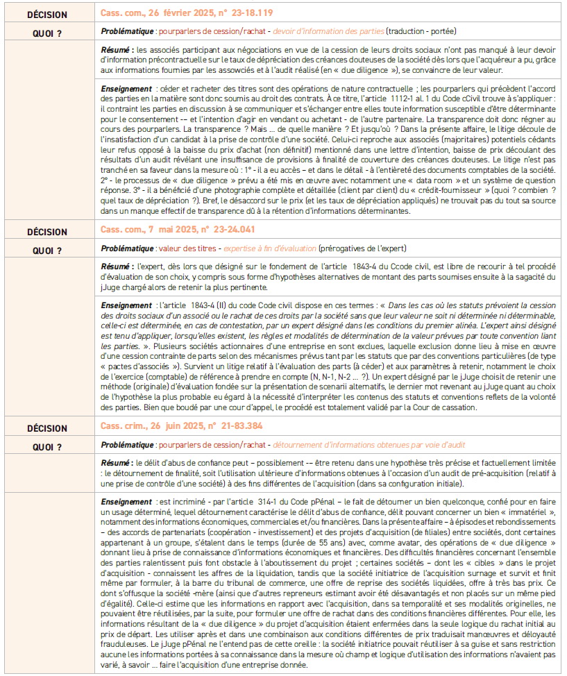 PARTS ET TITRES DE LA SOCIÉTÉ : ACQUISITION – CESSION – ÉVALUATION –