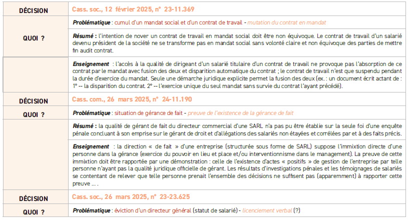 DIRIGEANTS ET MANDATAIRES SOCIAUX DE LA SOCIÉTÉ